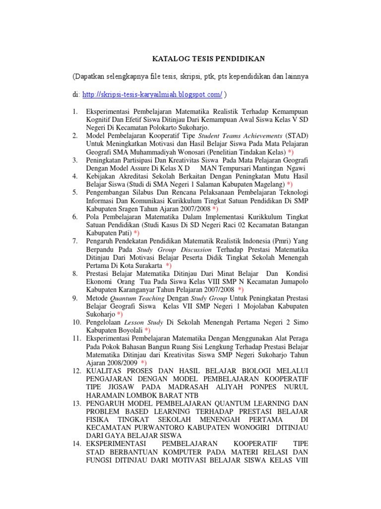 Kumpulan contoh skripsi dan tesis pendidikan, manajemen, msdm, pemasaran, keuangan, akuntansi, agribisnis, agronomi, pertanian, peternakan, teknik, sipil, elektro. Contoh proposal penelitian kualitatif pendidikan disajikan khusus untuk anda yang sedang melakukan penelitian kualitatif tentang pendidikan yang serupa. Home → review → contoh tesis pendidikan pendekatan pembelajaran interaktif. Download contoh tesis pendidikan tesis manajemen pendidikan dan contoh skripsi pendidikan menyediakan contoh judul tesis manajemen pendidikan dan skripsi manajemen pendidikan dalam bentuk ms word. Tesis strategi peningkatan kompetensi guru dengan pendekatan analysis siswa sd npres bertingkat mamajang makassar 8.
